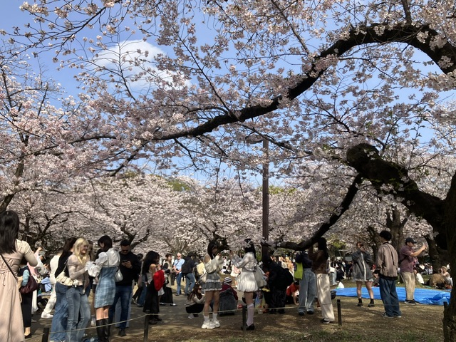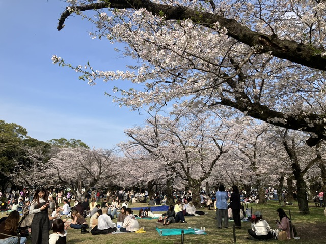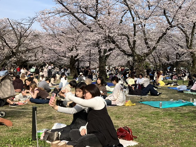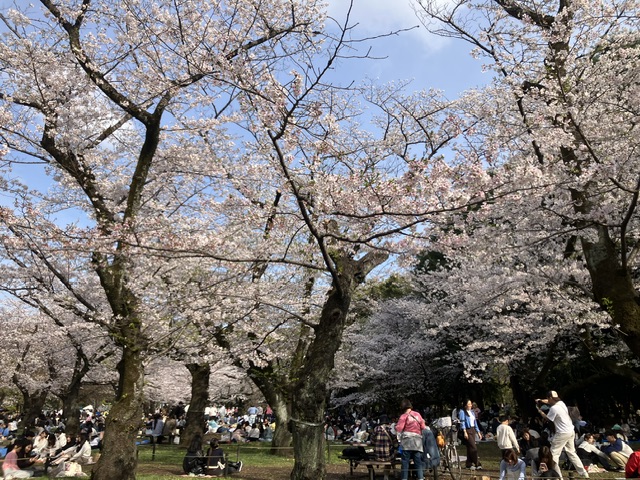 代々木公園は花見客で賑わっています。