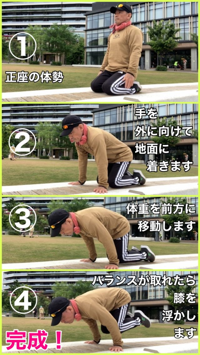 ②手を逆ハの字に開いて、肩幅に着きます🖐️